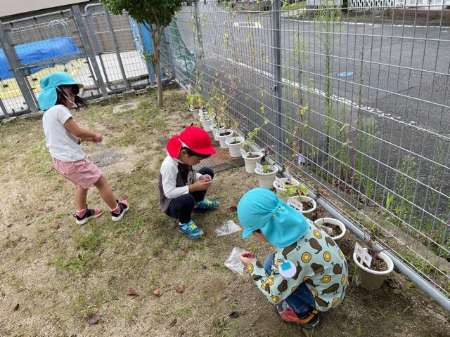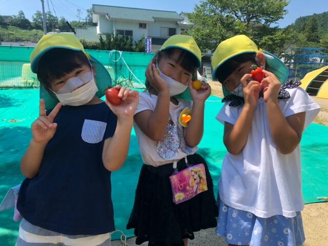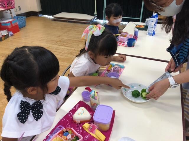 お昼に副園長先生が【ピーマンの解体ショー】を見せて下さり、野菜のおなかに興味津々の子どもたちでした