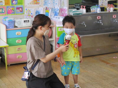 インタビューでは、「お友達と遊んだ」「おもちゃで遊んだ」「庭で遊んだ」と教えてくれました。みんな我慢の夏を工夫して過ごしていたようですね。