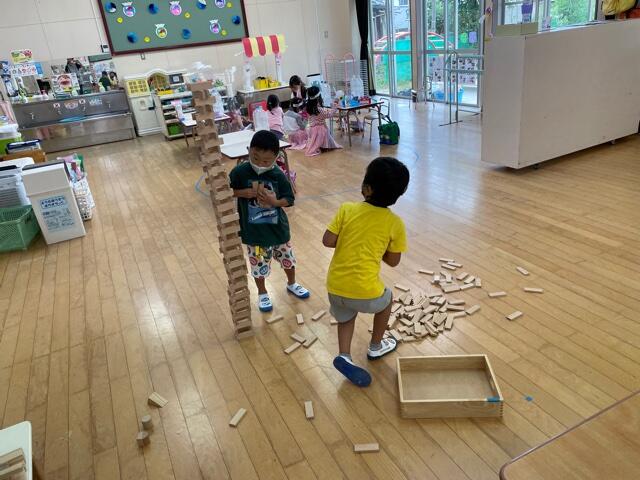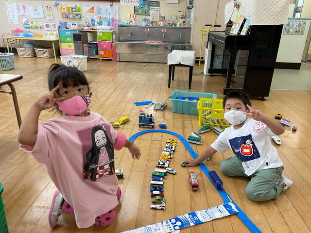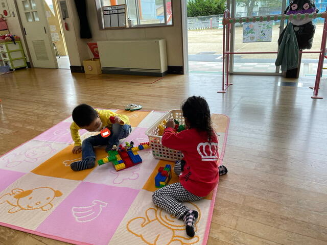 今日から通常保育が始まりました!子どもたちは登園すると元気いっぱいお友だちと楽しく遊ぶ姿が見られていました