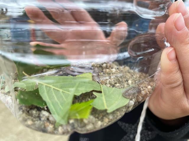 ダンゴムシを手にのせて、「くすぐったい~」