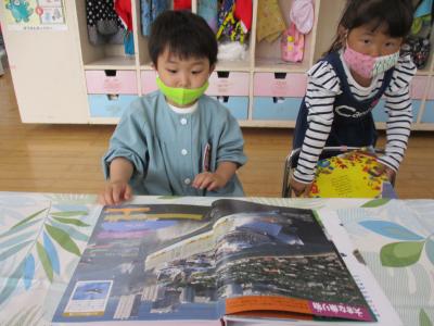 こちらでは乗り物図鑑をみて楽しんでいます。