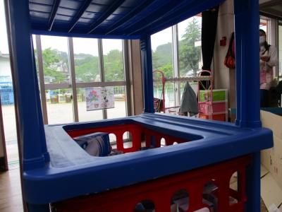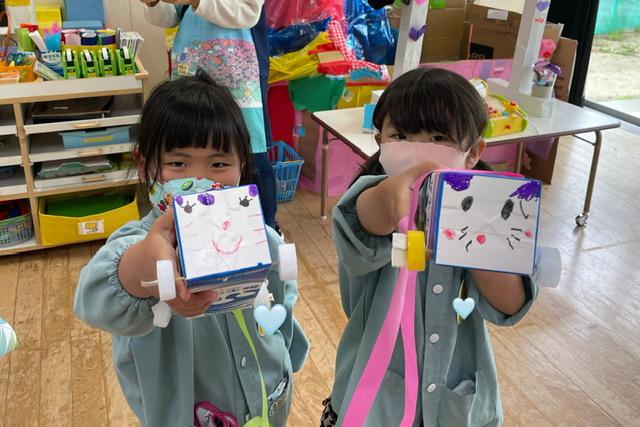 室内ではにじ・そらぐみさんは車遊びに夢中で、坂道を転がしたり、友だちと一緒に走らせることを楽しんだりしていました