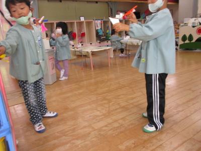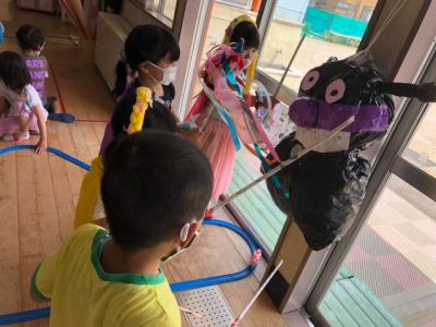 午後はにじ、そらぐみさんのお部屋につきぐみさんがお楽しみを知らせに来てくれました