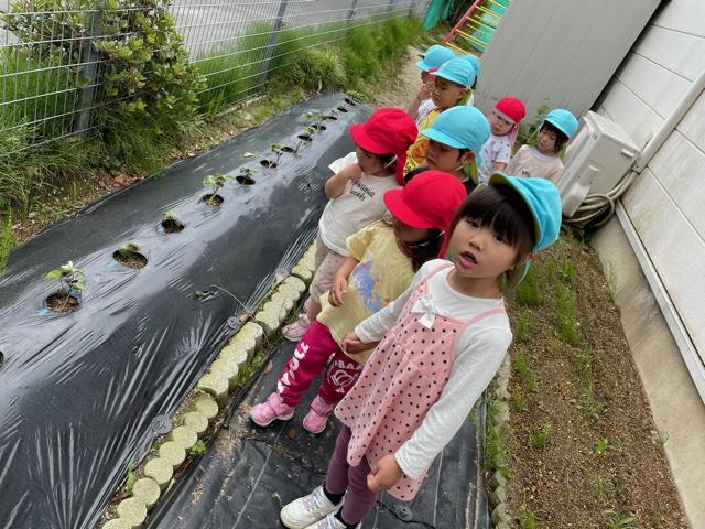にじ、そらぐみさんは大切に育てている枝豆やさつまいもの生長を見に行きました