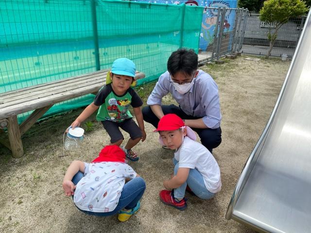 園長先生にも「見てみてー!」と捕まえた虫を見せていました♪