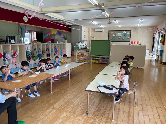 アイスを食べた後つきぐみさんは鍵盤ハーモニカに触れていました♪