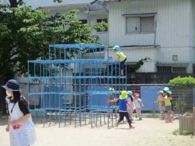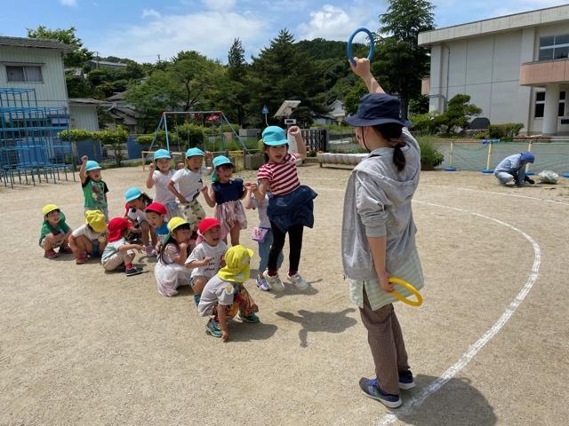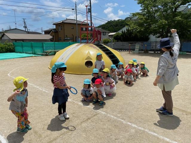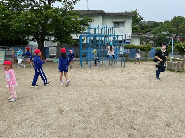 今日は雨が降る前にみんなで戸外遊びをしました。