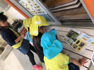 今日は雨が降る前に戸外に出てみんなで虫探しをしました