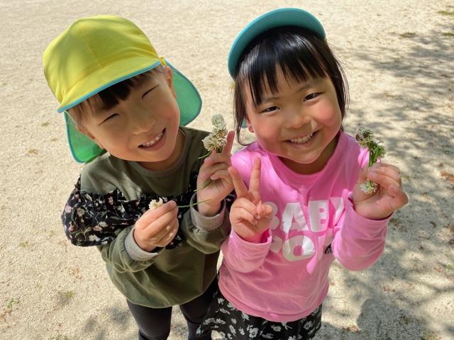 校庭では少しみんなでお散歩をした後、遊具などで遊んだり、花冠を作ったり、虫を見つけたりしました!!