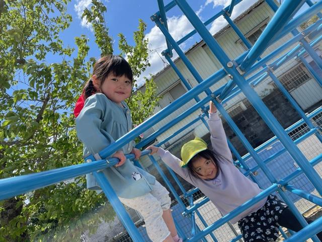 にじぐみさんとつきぐみさんで仲良くジャングルジムで遊んだり…