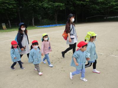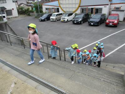 にじぐみさんは初めてだったので、つきぐみのお姉さんたちが手を繋いで「こっちだよ」と声をかけたり、駐車場を渡る際に左右確認をしたりしてくれました。