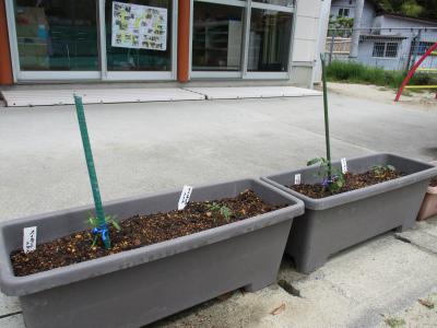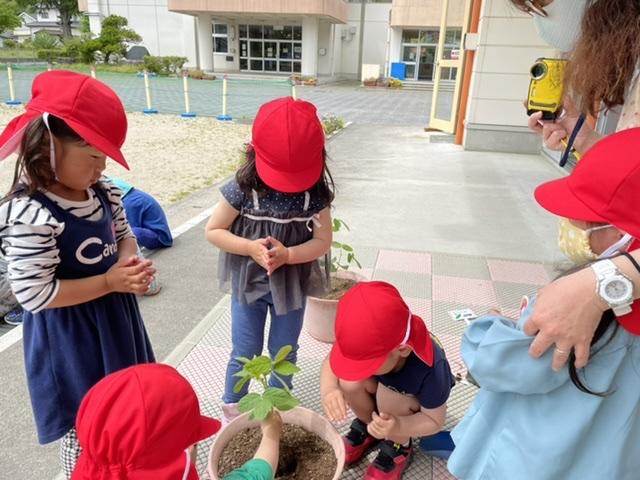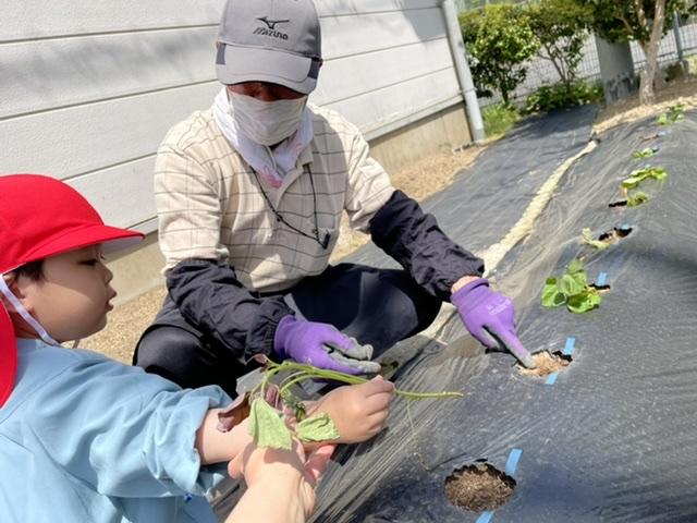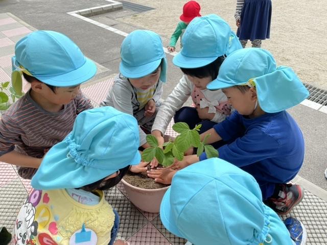 今日はにじ、そらぐみさんが枝豆を植えました!