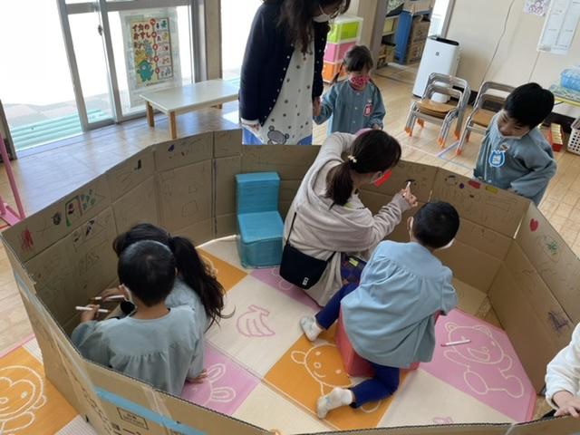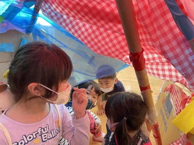 つきぐみさんが作ったおうちにはにじ、そらぐみさんが入って楽しむ姿が見られていました♪