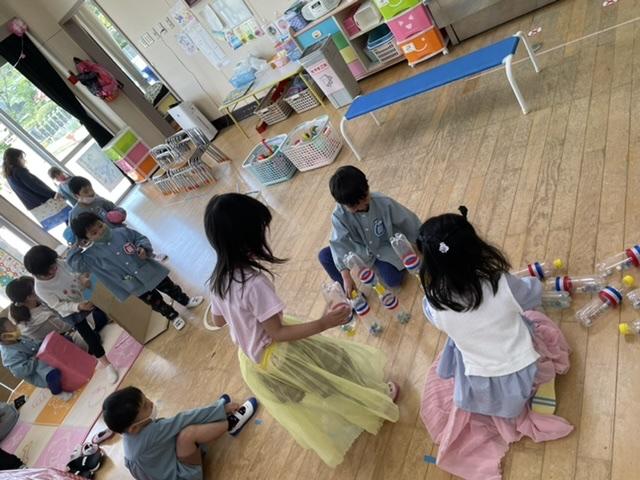 今日も朝からおうちごっこやボーリングをして楽しむ子どもたちの元気な姿が見られました