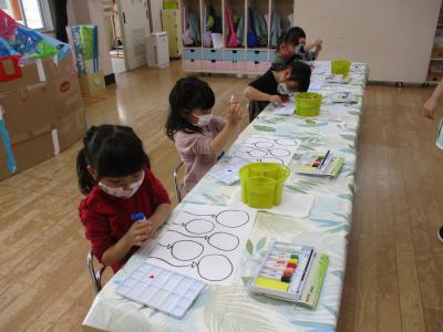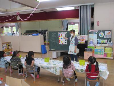 先生の問いかけに、園児たちは「〇色かな?」「〇色だよ」と自分の考えを伝える姿が。