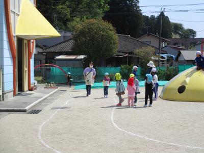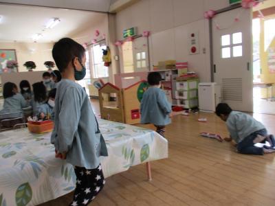 お互いに気を遣って、いつもより少し静かな宮幼稚園でした。