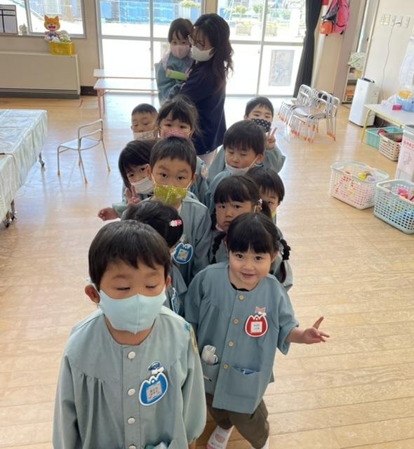 トイレに時間がかかったり、まだなじめなかったりするにじ組さんにも優しく接することができました。話を聞く姿も立派。