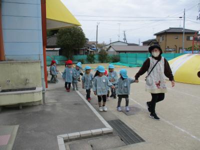 手洗い場が変わったのを忘れて、慌てて自分たちの手洗い場にもどったつき組さん。