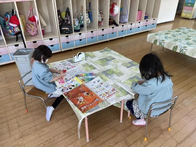 そら、つきぐみさんはにじぐみさんにクレヨンの使い方など教えてあげたり、席を譲ってあげたりしていました