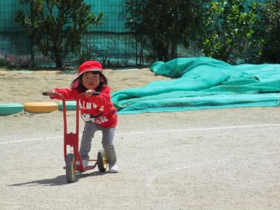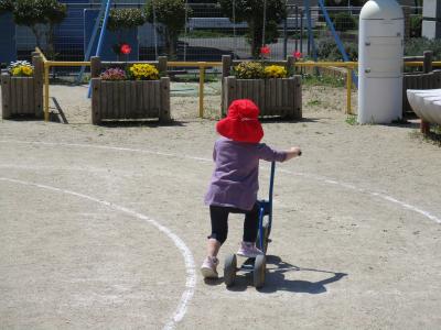 今日は天気が良いので外遊び。にじ組さんも3輪バイクに挑戦。とっても上手です。
