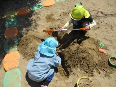 その後は砂場遊び。小学校のお兄さんが見に来てくれました。
