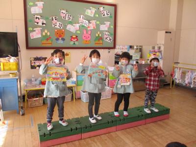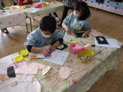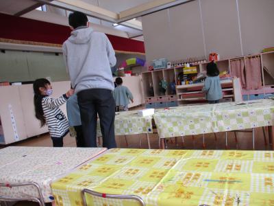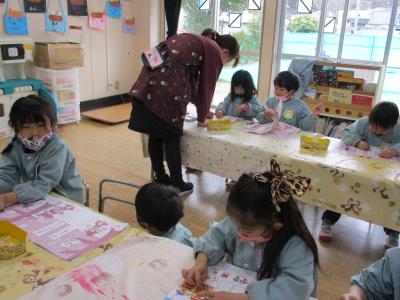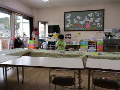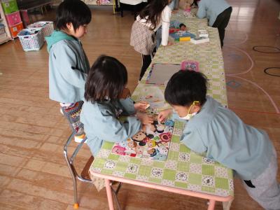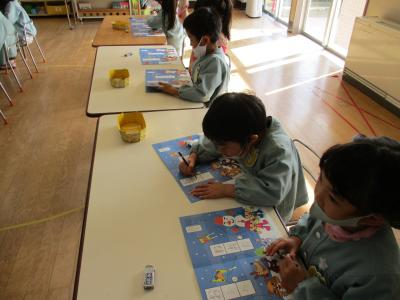つき組さんの朝の学習の時間。丁寧に書いています。