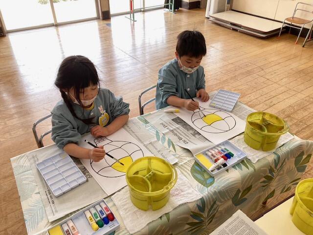 絵の具の使い方も覚えて友だちに教えてあげる姿が見られていました!