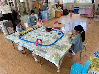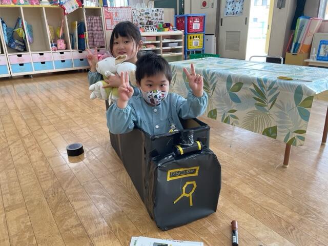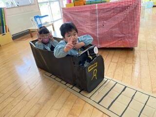 蒸気機関車に線路をつけたり、病院ごっこを楽しんだりしました♪