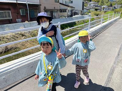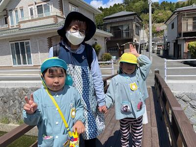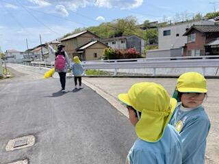 「みーぎ、ひだり、みーぎ、(車)来てないね!」と先生たちも確認できるようにかけ声をかけてくれました!