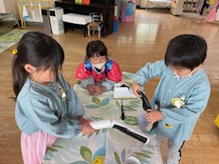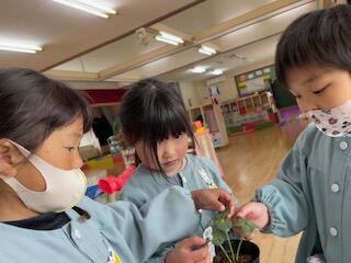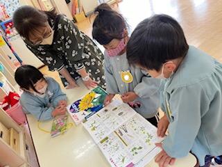 幼稚園に帰ってきて、みんなで図鑑に載っているかな?と見つけたお花をみんなで探しました!