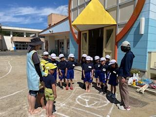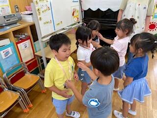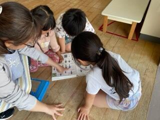 今日は先生たちがにじぐみさんになって、左右確認などを子どもたちに教えてもらいました
