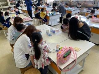 小学校に行き、1、2年生と一緒に親子で参加しました