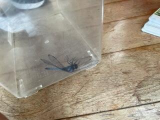 昼食の準備をしているととんぼが遊びに来たので図鑑で調べてみると『オオシオカラトンボ』という名前でした