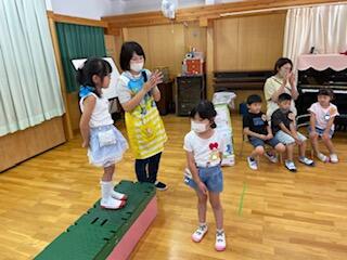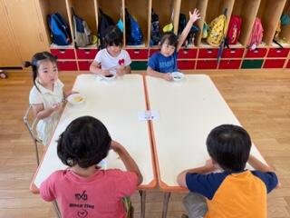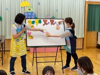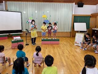 自己紹介をしたり、6月生まれのお友だちに質問をしたり、先生たちからのお楽しみを見たりしました!