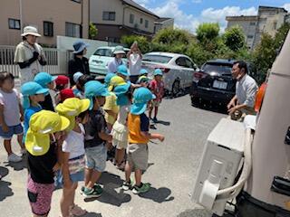 戸外遊びではTOYクリエイター野出さんの車からしゃぼん玉が出るところを見せてもらいました