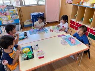 「サーモンもあったらいいんじゃない?」とネタを考えて作ったり、「先生!ピッピッて頼むやつは?」とアイディアを出したりしながら遊びを進めていました!