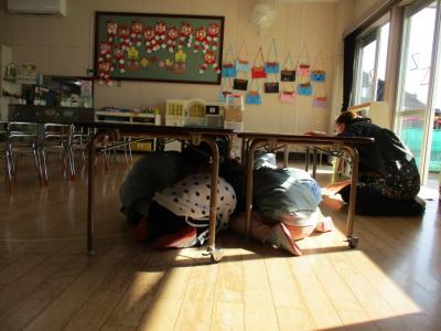避難訓練を行いました。今回は園児たちには知らせてません。(先生にも何時に実施するかは伝えませんでした。)