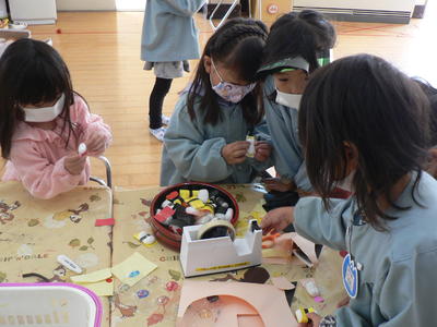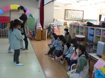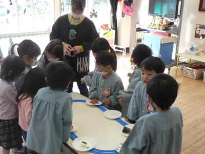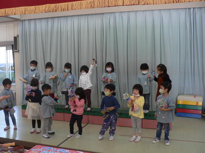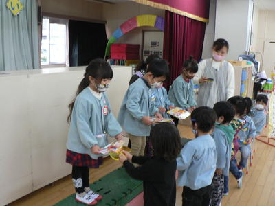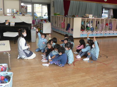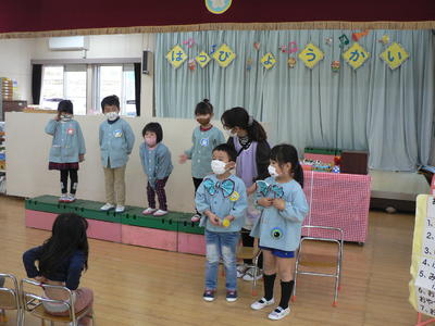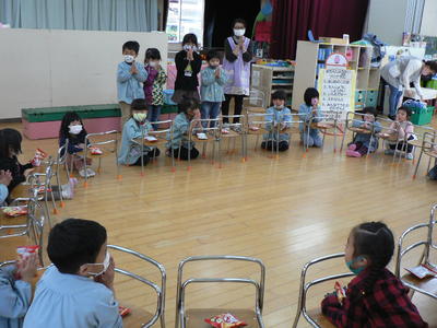 にじ組さんとそら組さん、今日のお当番さんの発表です。