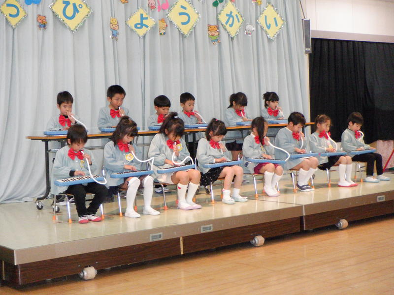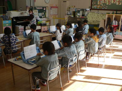 鍵盤ハーモニカの練習をしているつき組さんでした。