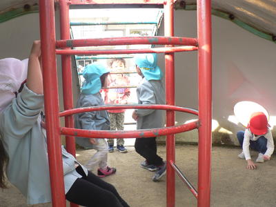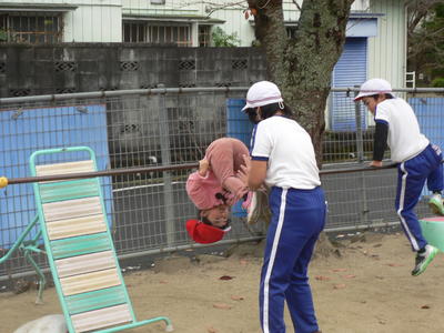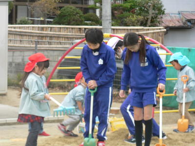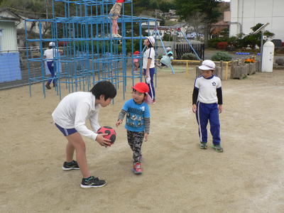 今日も園庭からはしゃいだ声が聞こえます。小学生が遊びに来てくれました。