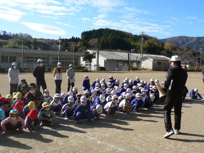 移動してお話を聞きました。校庭への避難は初めてでしたが、とても上手にできました。