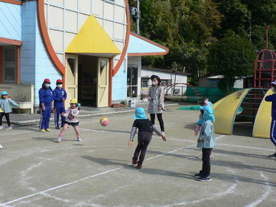 その後、つき組で取り組み始めたドッジボールのやり方を教えてもらい、一緒にゲームを楽しみました。