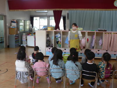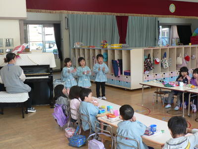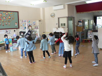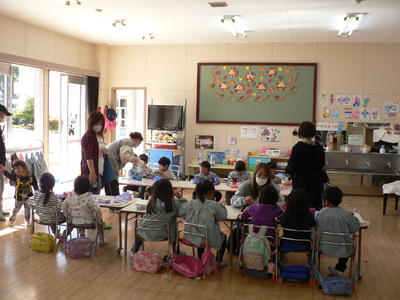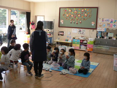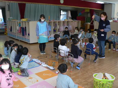 小学校の6年生のお兄さん、お姉さんが幼稚園に来てくれました。