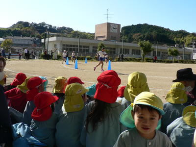 どこを応援しているのでしょう。でも、大きいお兄さんお姉さんの走りにとても感動したようです。
