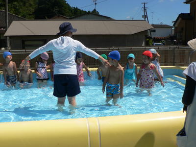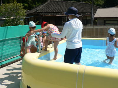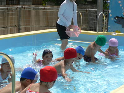 今日のプールは、格別に気持ちがよかったようです。外遊びができない代わりに、ルールを守って楽しく活動することができました。