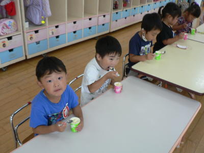 エプロンシアターの後は、お待ちかねのおやつタイム。