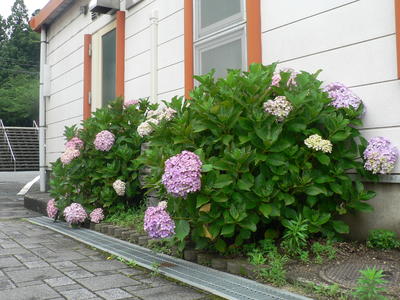幼稚園のアジサイはピンク色です。土はアルカリ性よりなんですね。