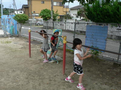 今日から、園庭開放をしています。短い時間ですが、自由遊びを楽しんでください。くれぐれもけがにはご注意を。