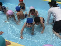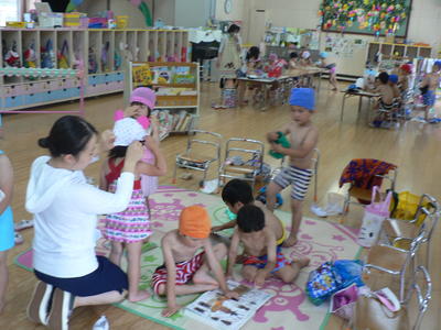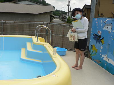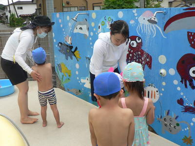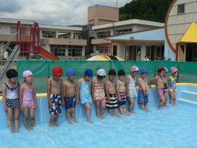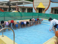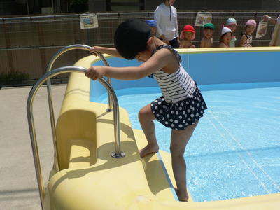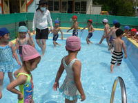 今日は延期になっていたプール開き。園児たちはわくわくが止まりません。