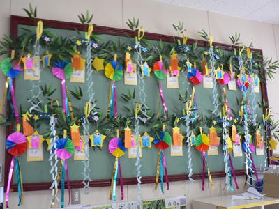 保育室には、七夕の飾りが登場しました。どんな願いが書かれているのでしょうか。